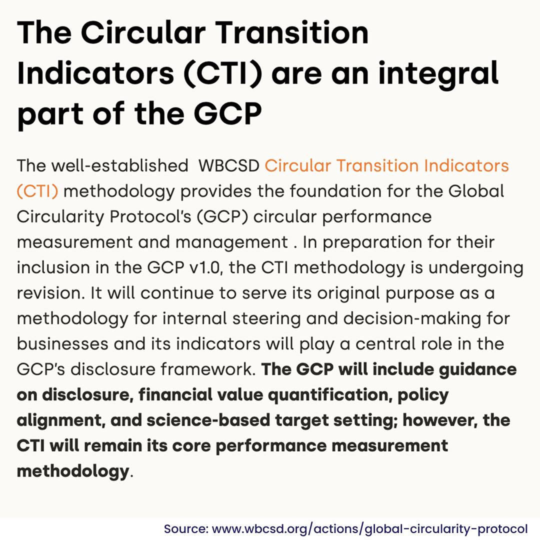The GCP is built on robust frameworks, with the Circular Transition Indicators (CTI) at its core. Developed by WBCSD in collaboration with over 30 major companies.